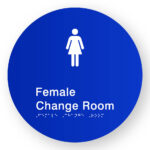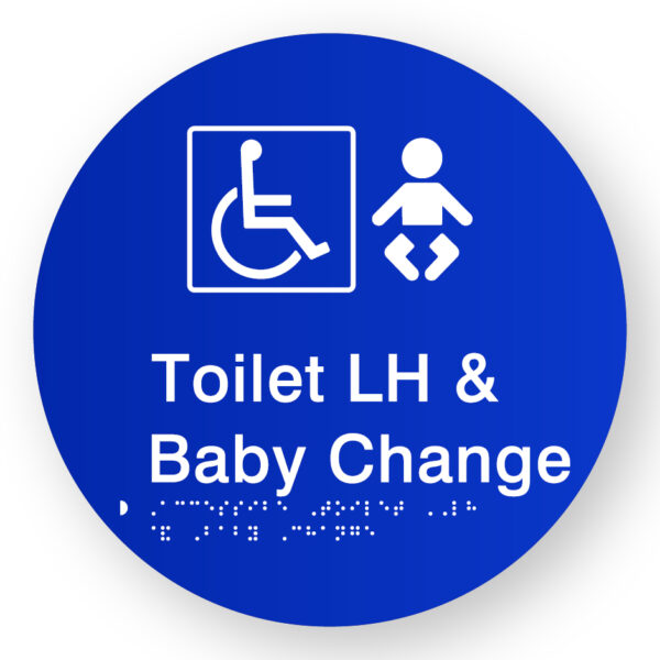 Accessible Toilet LH & Baby Change Braille Sign on a Tactile Printed Blue Acrylic Disk
