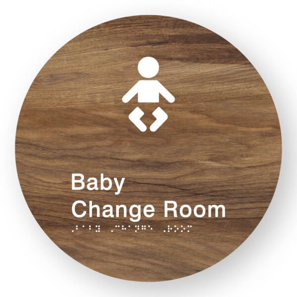 Baby Change Room Braille Sign on a Tactile Printed Mid-Woodgrain Acrylic Disk