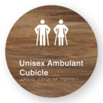 Female Ambulant Cubicle Braille Sign on a Tactile Printed Mid-Woodgrain Acrylic Disk