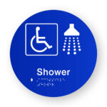 Female Toilet Ambulant Toilet & Shower Braille Sign on a Tactile Printed Blue Acrylic Disk