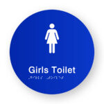 Female Toilet Ambulant Toilet & Shower Braille Sign on a Tactile Printed Blue Acrylic Disk