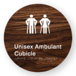 Girls Ambulant Toilet Braille Sign on a Tactile Printed Dark Woodgrain Acrylic Disk