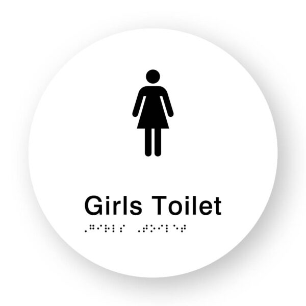 Girls Toilet Braille Sign on a Tactile Printed White Acrylic Disk