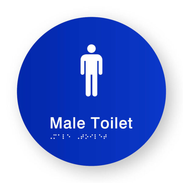Male Toilet Braille Sign on a Tactile Printed Blue Acrylic Disk