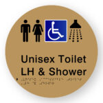 Student Ambulant Toilet Braille Sign on a Tactile Printed Gold Acrylic Disk