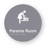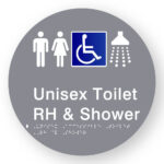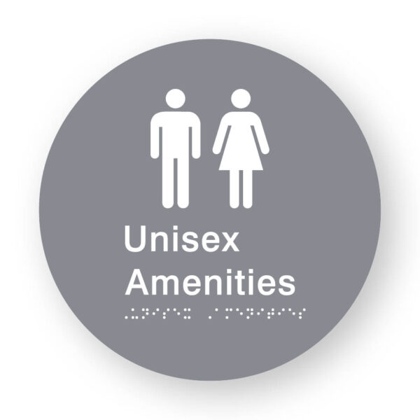 Unisex Amenities Braille Sign on a Tactile Printed Grey Acrylic Disk