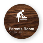 Unisex Toilet & Ambulant Toilet Braille Sign on a Tactile Printed Dark Woodgrain Acrylic Disk
