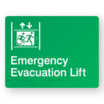 Emergency Evacuation Lift Braille Sign in Green Acrylic