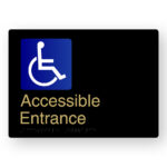 Accessible Entrance (Left Arrow) Braille Sign in a Black & Satin Brass Finish