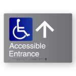 Production Method: BrailleFace – Using our patented BrailleFace production method, each Braille sign will be formed from a single piece of metal creating a compliant continuous face, soft to touch Braille Tactile Sign with no parts adhered to the surface of the sign in any way. As a result, the signs construction will deter vandalism & the sign face has no joins to harbour bacteria. Each Braille sign is made from a single sheet of satin 2pac grey aluminium with the text and/or figures printed white.