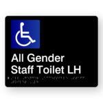 Production Method: BrailleForm – Using our exclusive BrailleForm production method, each sign will be formed from a single piece of acrylic creating a compliant continuous face, soft to touch Braille Sign with no parts adhered to the surface of the sign in any way. As a result, the signs construction will deter vandalism & the sign face has no joins to harbour bacteria.