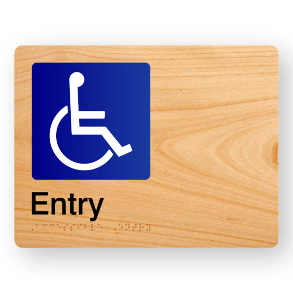 Accessible Entry Braille sign in Woodgrain Acrylic