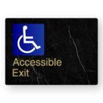 Accessible Exit (Left Arrow) Braille Sign in a Black Marble & Satin Brass Finish