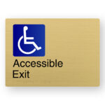 Accessible Exit (Left Arrow) Braille Sign in a Satin Brass Finish