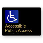 Production Method: BrailleFace – Using our patented BrailleFace production method, each Braille sign will be formed from a single piece of metal creating a compliant continuous face, soft to touch Braille Tactile Sign with no parts adhered to the surface of the sign in any way. As a result, the signs construction will deter vandalism & the sign face has no joins to harbour bacteria. Each Braille sign is made from a single sheet of black printed aluminium with satin brass finish text and/or figures.