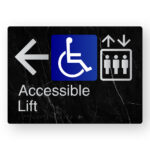 Accessible Lift (Right Arrow) Braille Sign in a Black Marble & Silver Finish