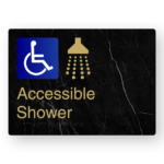 Accessible Ramp Braille Sign in a Black Marble & Satin Brass Finish