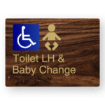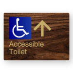 Accessible Toilet LH Braille Sign in a Dark Woodgrain & Brass Finish