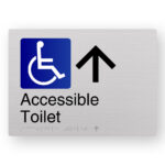 Accessible Toilet (Right Arrow) Braille Sign in Anodised Aluminium