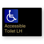 Accessible Toilet (Right Arrow) Braille Sign in a Black & Satin Brass Finish