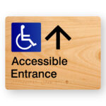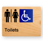 Accessible Toilet (Up Arrow) Braille sign in Woodgrain Acrylic
