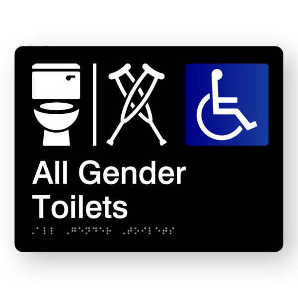 Airlock – All Gender Toilets Braille Sign in Black Acrylic