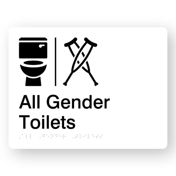 Airlock – All Gender Toilets Braille Sign in White Acrylic