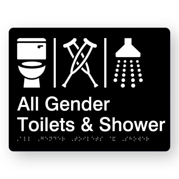 Airlock – All Gender Toilets & Shower Braille Sign in Black Acrylic