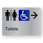 Airlock – Toilets (Left Arrow) Braille Sign in Stainless Steel