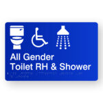 All Gender Accessible Staff Toilet LH Braille Sign in Blue Acrylic