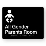 - All Gender Accessible Toilet RH & Baby Change Acrylic Braille Sign is moulded from a single piece of black acrylic with no pieces adhered to the surface.