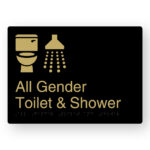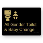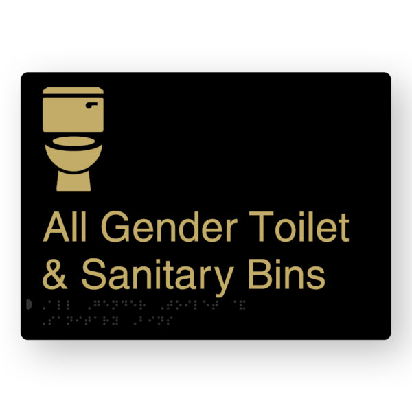 All Gender Toilet & Sanitary Bins Braille Sign in a Black & Satin Brass Finish