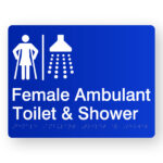 This Ambulant Cubicle Braille Sign in Blue acrylic is a mandatory statutory signage requirement for public buildings. Compliant with Australian standards & NCC requirements, it features Grade 1 uncontracted Braille, tactile text & graphics, ensuring it effectively indicates sanitary facilities.