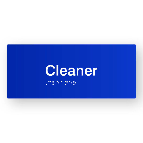 Cleaner Braille Sign in Blue Tactile Printed Acrylic