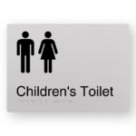 Production Method: BrailleFace – Using our patented BrailleFace production method, each Braille sign will be formed from a single piece of metal creating a compliant continuous face, soft to touch Braille Tactile Sign with no parts adhered to the surface of the sign in any way. As a result, the signs construction will deter vandalism & the sign face has no joins to harbour bacteria. Each Braille sign is made from a single sheet of anodised aluminium with the text and/or figures printed black.