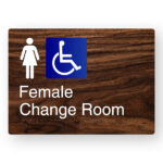 Production Method: BrailleFace – Using our patented BrailleFace production method, each Braille sign will be formed from a single piece of metal creating a compliant continuous face, soft to touch Braille Tactile Sign with no parts adhered to the surface of the sign in any way. As a result, the signs construction will deter vandalism & the sign face has no joins to harbour bacteria. Each Braille sign is made from a single sheet of dark woodgrain printed aluminium with white printed text and/or figures.