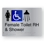 Female Accessible Toilet RH Braille Sign in Stainless Steel