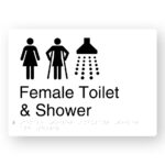 Female Toilet Ambulant Toilet & Baby Change Braille Sign in White Aluminium