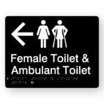 Female Toilets (Right Arrow) Braille Sign in Black Acrylic