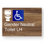 Production Method: BrailleFace – Using our patented BrailleFace production method, each Braille sign will be formed from a single piece of metal creating a compliant continuous face, soft to touch Braille Tactile Sign with no parts adhered to the surface of the sign in any way. As a result, the signs construction will deter vandalism & the sign face has no joins to harbour bacteria. Each Braille sign is made from a single sheet of mid-tone woodgrain printed aluminium with white printed text and/or figures.