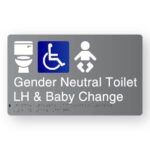 Gender Neutral Accessible Toilet LH Braille Sign in Grey Aluminium