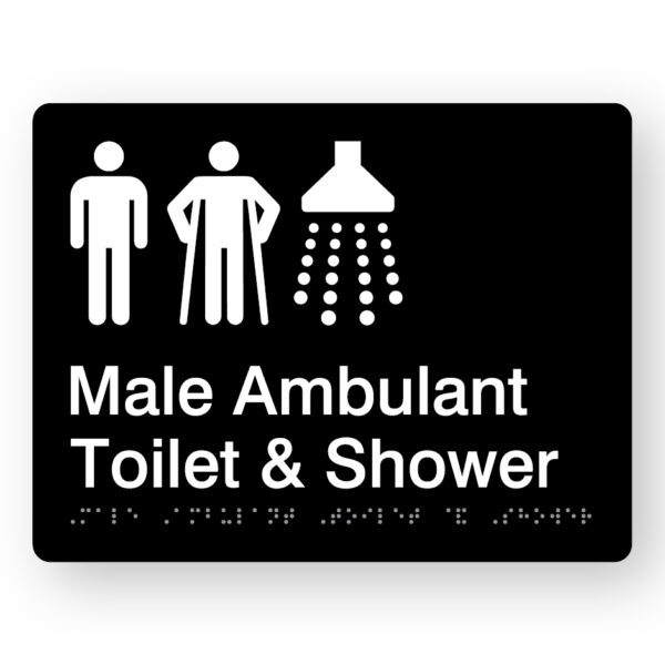 Male Ambulant Toilet & Shower Braille Sign in Black Acrylic