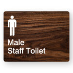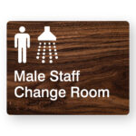 Male Staff Shower Braille Sign in Dark Woodgrain