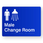 This Male Toilet & Ambulant Toilet Braille Sign in Blue acrylic is a mandatory statutory signage requirement for public buildings. Compliant with Australian standards & NCC requirements, it features Grade 1 uncontracted Braille, tactile text & graphics, ensuring it effectively indicates sanitary facilities.