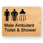 Male Toilet Ambulant Toilet Shower & Locker Room Braille sign in Woodgrain Acrylic