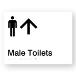 This Male Toilet & Ambulant Toilet Braille Sign in White acrylic is a mandatory statutory signage requirement for public buildings. Compliant with Australian standards & NCC requirements, it features Grade 1 uncontracted Braille, tactile text & graphics, ensuring it effectively indicates sanitary facilities.