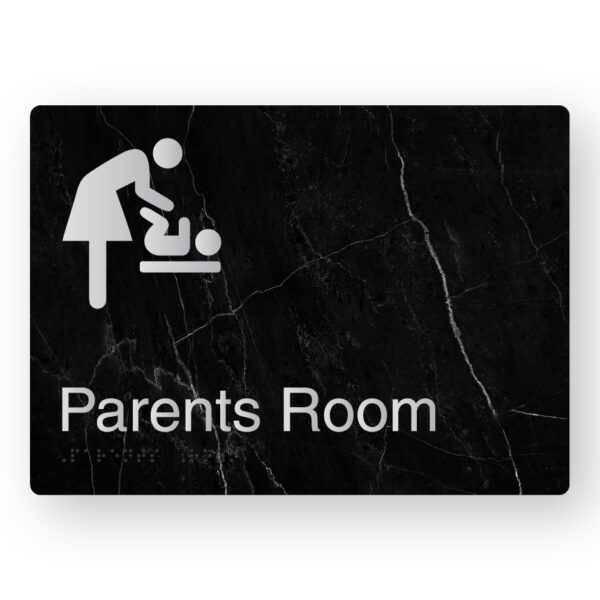 Parents Room Braille Sign in a Black Marble & Silver Finish
