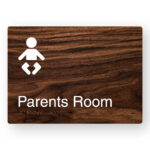 Production Method: BrailleFace – Using our patented BrailleFace production method, each Braille sign will be formed from a single piece of metal creating a compliant continuous face, soft to touch Braille Tactile Sign with no parts adhered to the surface of the sign in any way. As a result, the signs construction will deter vandalism & the sign face has no joins to harbour bacteria. Each Braille sign is made from a single sheet of dark woodgrain printed aluminium with white printed text and/or figures.