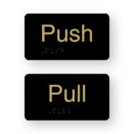 Push Button for Access Braille Sign in a Black & Satin Brass Finish