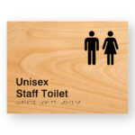 Staff Ambulant Toilet Braille Sign in Woodgrain Tactile Printed Acrylic